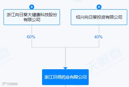 天眼查显示,贝得药业的股东包含向日葵、绍兴向日葵,持有股权比例分别为60%、40%。