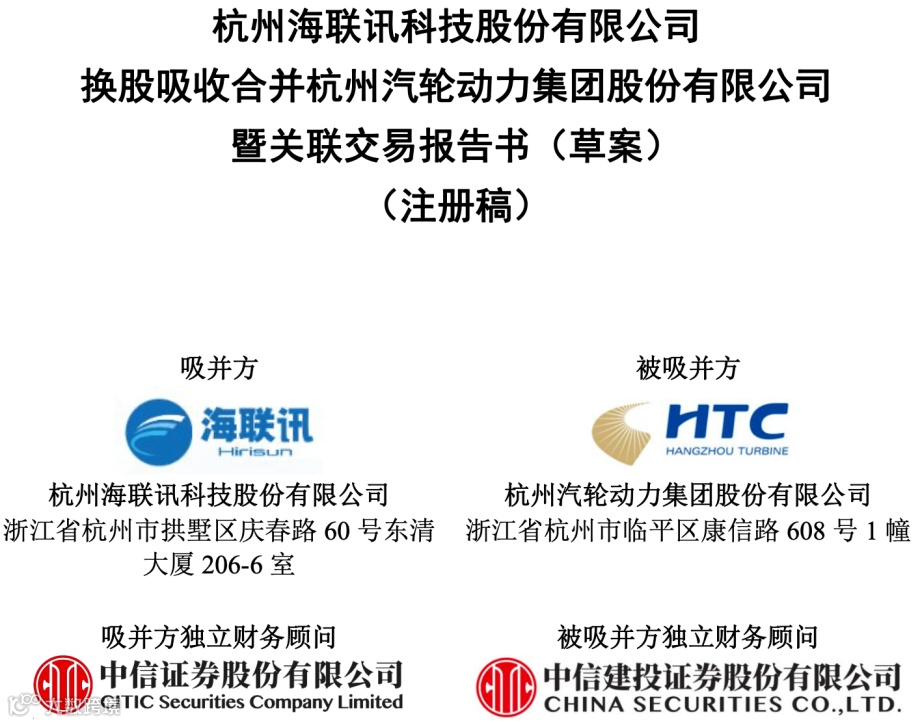 根据9月披露的交易报告书草案,海联讯以发行A股股票方式换股吸收合并杭汽轮,海联讯为吸收合并方,杭汽轮为被吸收合并方,即海联讯向杭汽轮的全体换股股东发行A股股票,交换该等股东所持有的杭汽轮股票。本次换股吸收合并完成后,杭汽轮将终止上市并注销法人资格。