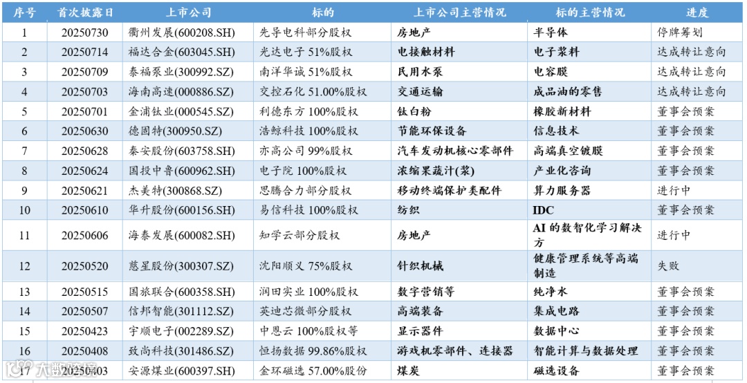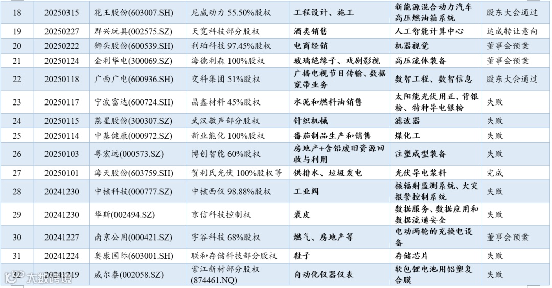 注:数据来源于Wind,截至2025年8月10日,跨界并购的判断存在一定的主观因素