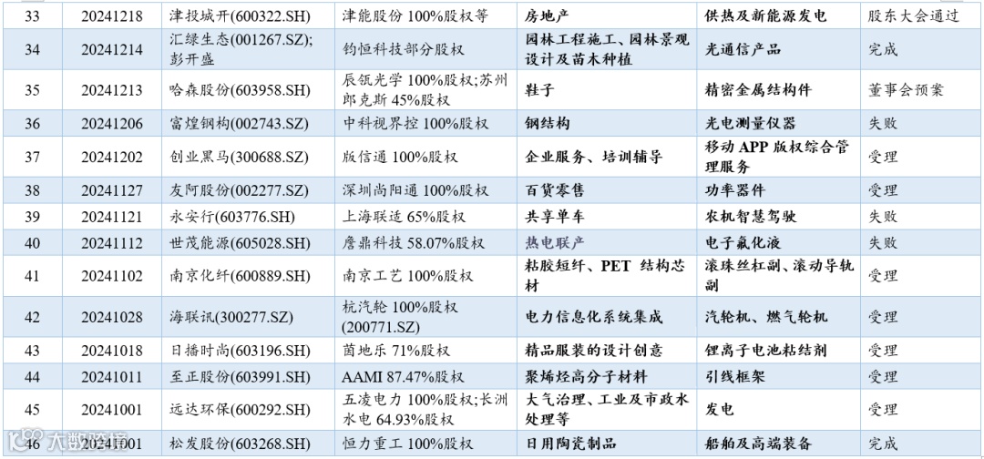 924以来,上市公司披露重大资产收购(含发股、可转债等许可类)频发,共有192家上市公司披露重大资产收购,值得关注的是46家为跨界并购,占比约1/4。