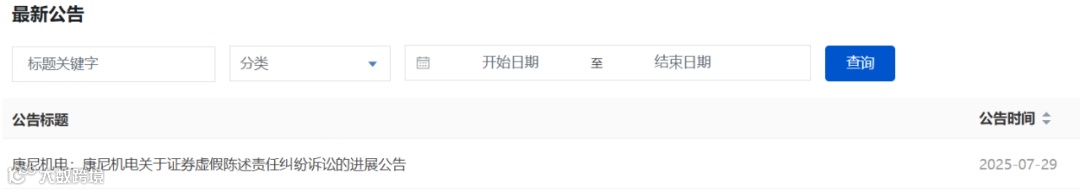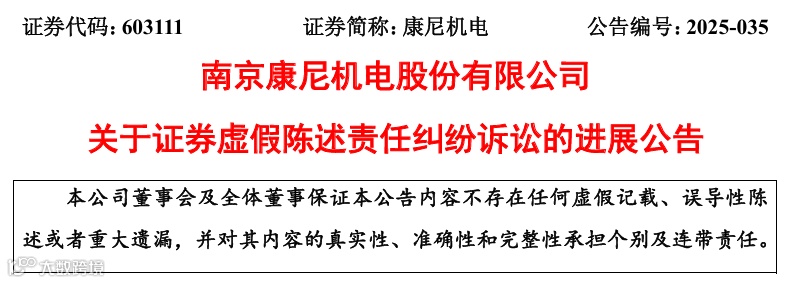 7月29日,南京康尼机电股份有限公司(康尼机电,603111)披露关于证券虚假陈述责任纠纷诉讼的进展公告。