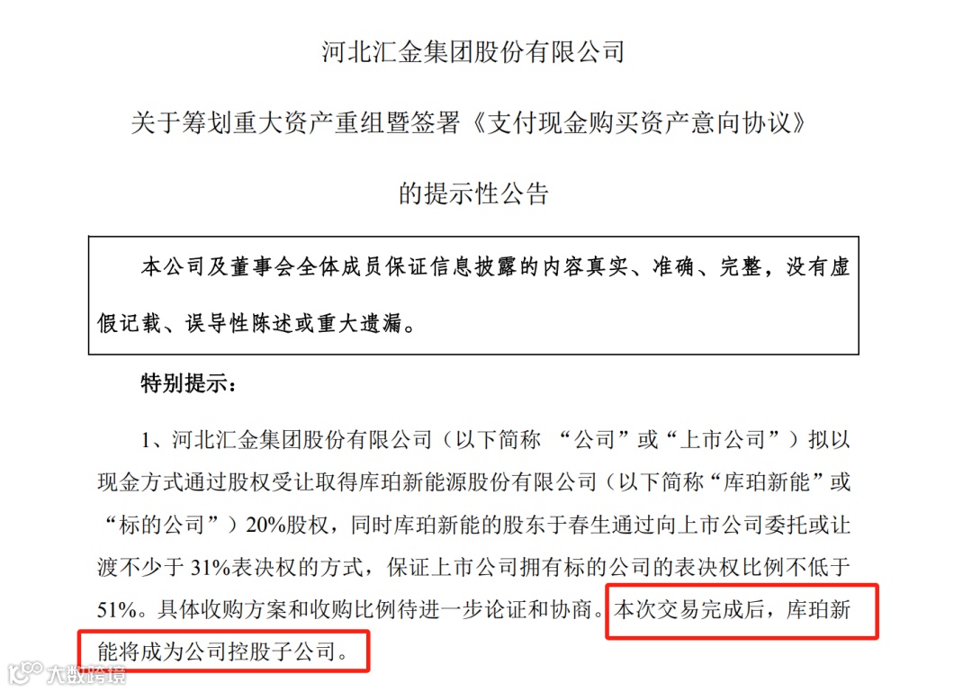 本次交易完成后,库珀新能将成为汇金股份控股子公司。根据初步测算,本次交易预计构成重大资产重组,但公司股票不停牌。