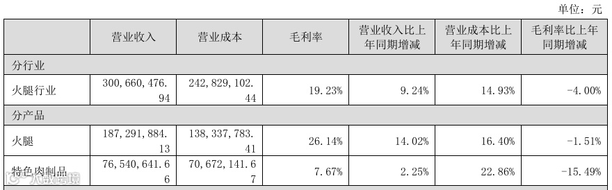 2024年,公司火腿产品的毛利率为26.14%,同比下降1.51%,特色肉制品毛利率为7.67%,同比下降15.49%,这两类主营产品的毛利率已连续四年下降。