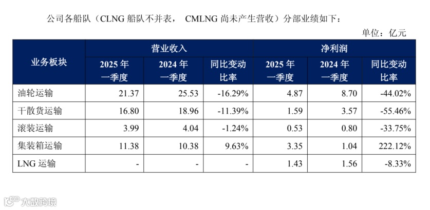 查阅招商轮船各业务板块,也可发现招商轮船多数船队2025年第一季度的业绩表现并不好。