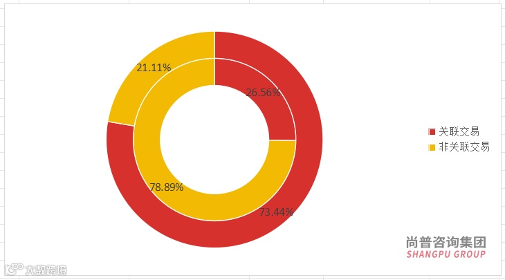 从关联交易情况看,上月A股并购重组的64家上市公司中,17家为关联交易,47家为非关联交易;从交易金额来看,关联交易金额为5,274,241.36万元,非关联交易金额为1,411,260.78万元,占比分别为78.89%和21.11%。