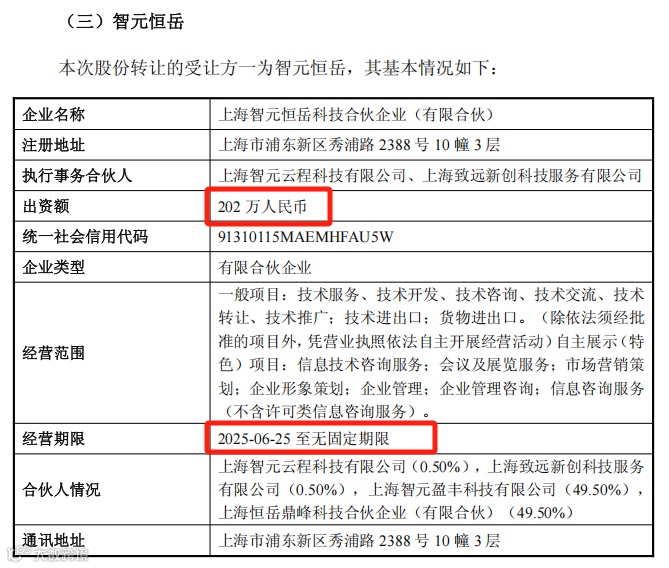 同时,智元恒岳的执行事务合伙人分别是致远新创、上海智元云程科技有限公司。