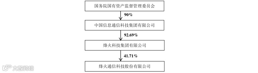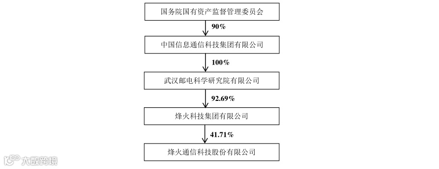 本次无偿划转前,邮科院通过烽火科技间接持有烽火通信 494,097,741 股股份,占公司目前股份总数的比例为 41.71%。本次无偿划转前,公司的股权控制结构如下图所示:
