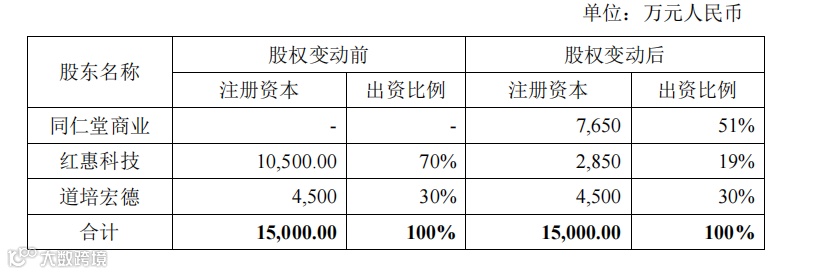 本次股权收购事项完成后,红惠医药股权结构变动如下: