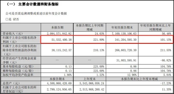 在发布收购事项的同时,三只松鼠还发布了2024年第三季度报告,数据显示其前三季度营业收入达到71.69亿元,同比增长56.46%;归属于上市公司股东的净利润为3.41亿元,同比增长101.15%。特别是在第三季度,净利润高达5153.24万元,同比增长221.89%。