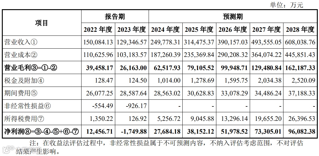 标的公司报告期和预测期营业收入、营业成本、期间费用、净利润情况如下: