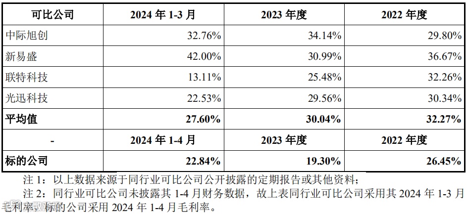 报告期内,标的公司与同行业可比公司产品毛利率比较情况如下表所示:
