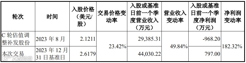 本次交易价格较调整后的 C 轮融资价格上涨了 23.42%,较 C 轮调整前上涨了 8.62%。