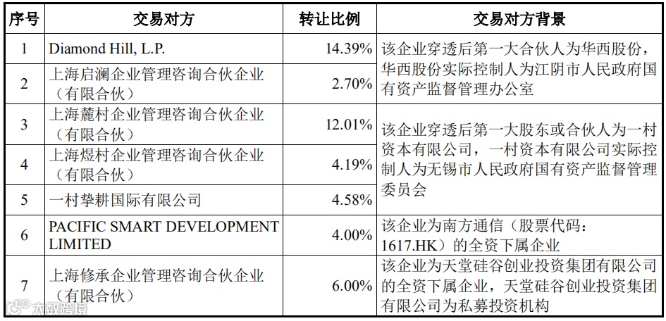 本次交易涉及 12 名交易对方,数量较多,且各自商业诉求不一。因主要股东包括国资背景股东、境外美元基金等类型机构,部分股东通过境外主体架构间接持有标的公司股权,因此存在境外股东实施跨境换股难度极大,境外股东及国资股东难以就业绩承诺安排协商一致等诸多客观情况。此外,本次交易对方非上市公司控股股东、实际控制人或者其控制的关联人,因此 经交易各方根据市场化原则自主协商,未设置业绩承诺和业绩补偿安排的情况符合《重组管理办法》有关规定。故本次交易采用现金收购形式且未设置业绩承诺条款。本次交易中交易对方的背景如下:
