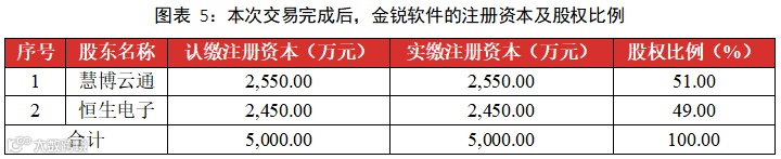 金锐软件作为恒生电子全资子公司深耕金融科技行业,渠道资源及客户优势明显。本次收购事项完成后,将进一步扩大慧博云通在金融科技领域的协同效应、业务规模、核心竞争力,完善市场布局,同时与金融科技领域的龙头企业形成相互促进、协同发展的良性互动,有利于提升慧博云通整体竞争力,保持长期可持续发展,为客户及股东创造价值。