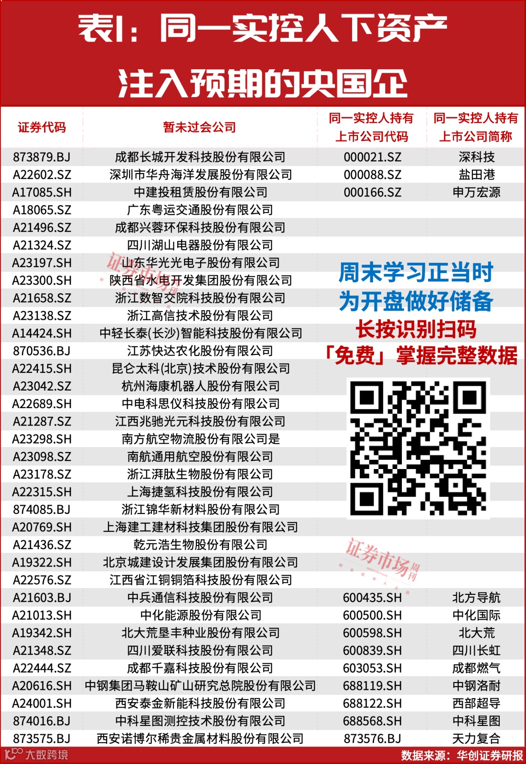 最终,华创证券筛选出71家存在同一实控人下资产注入预期的上市公司,其中34家为央国企,包括深科技、盐田港和券商股申万宏源等(见表1)。