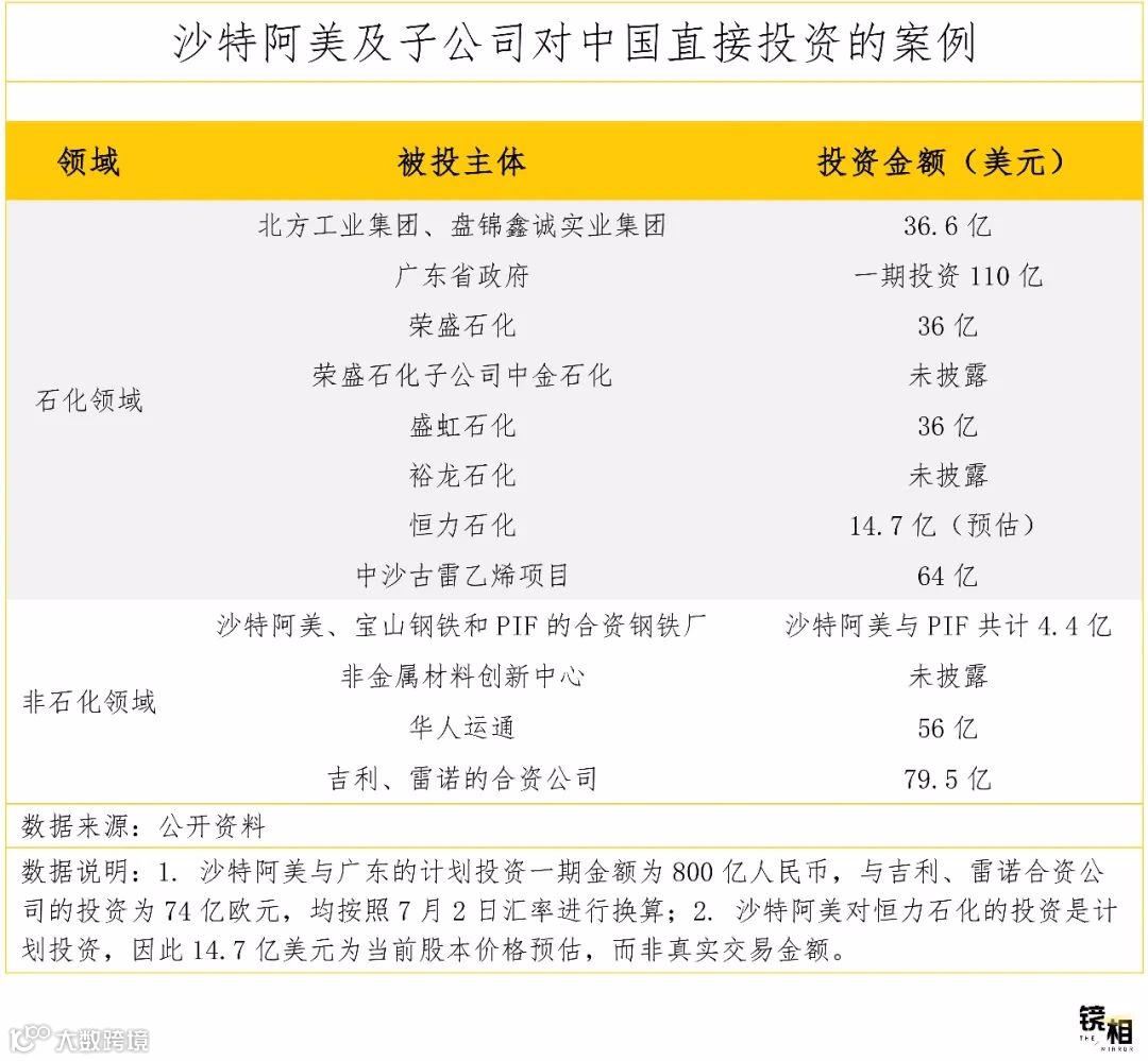 沙特阿美同样是沙特资本投资中国的一大来源。