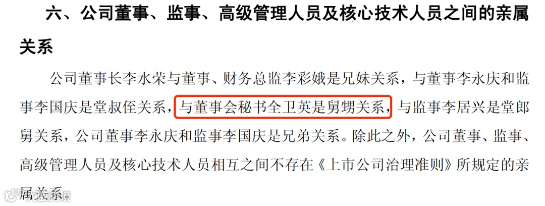 记者注意到,荣盛石化招股书曾介绍,全卫英为荣盛石化实控人李水荣的外甥女。而全卫军与全卫英为兄妹,这也表示全卫军是李水荣的外甥。