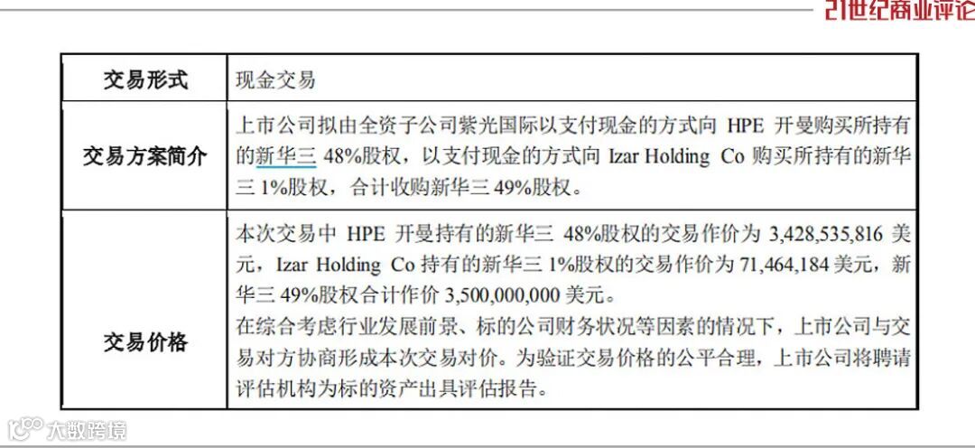 交易所涉三方,紫光股份、新华三以及HPE,皆是巨头。