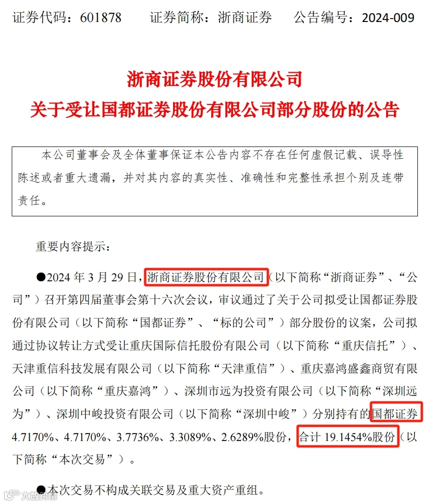 本次受让成功后,浙商证券将成为国都证券的第一大股东。据悉,本次股份转让浙商证券需要准备近30亿元资金。
