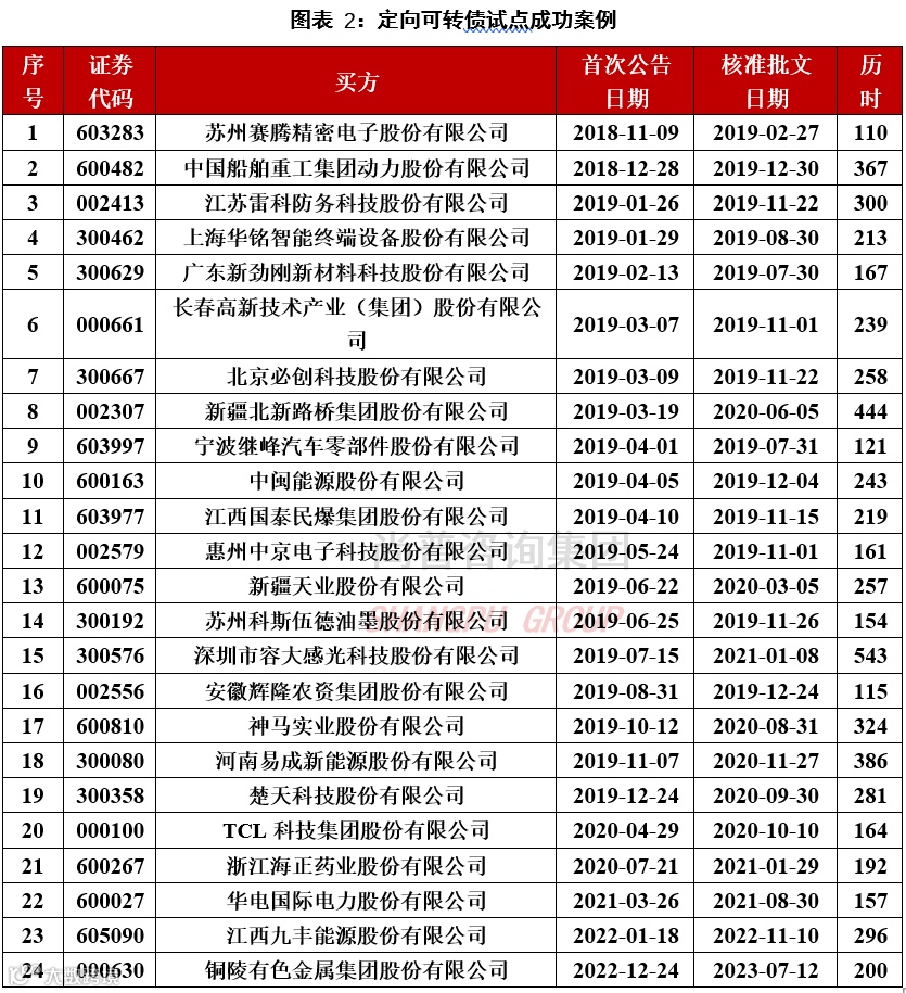 由于缺乏细化规则,在试点期间定向可转债并购案例往往需要搭配发行股份的方式来支付,且从首次公告预案到审核通过平均时长约为8个月。从上市公司角度来看,定向可转债可延迟现金支付本息,降低上市公司交易时资金压力;通过转股价格向上修正等条款降低转股数量,避免现有股东股权过分稀释;对交易对手方来说,“债券”属性确保未来固定现金回报,保障股价下行时的风险;“看涨期权”在股价上涨时选择转股获取股权增值收益。