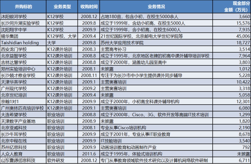 图:朴新教育5年时间收购51家机构资料来源:网络公开资料整理