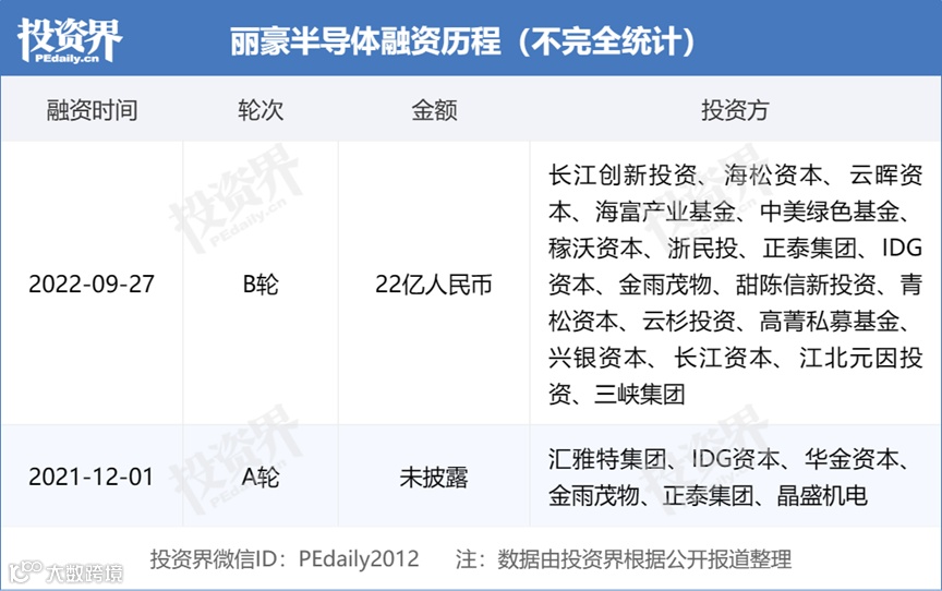 我们先看这家来自青海西宁的独角兽。去年9月,丽豪半导体宣布完成22亿元的B轮融资,投资方阵容豪华:三峡集团旗下长江证券创新投资、海松资本、雲晖资本、中国-比利时直接股权投资基金、中美绿色基金、浙民投等参与投资,IDG资本、正泰、金雨茂物等老股东追加投资。