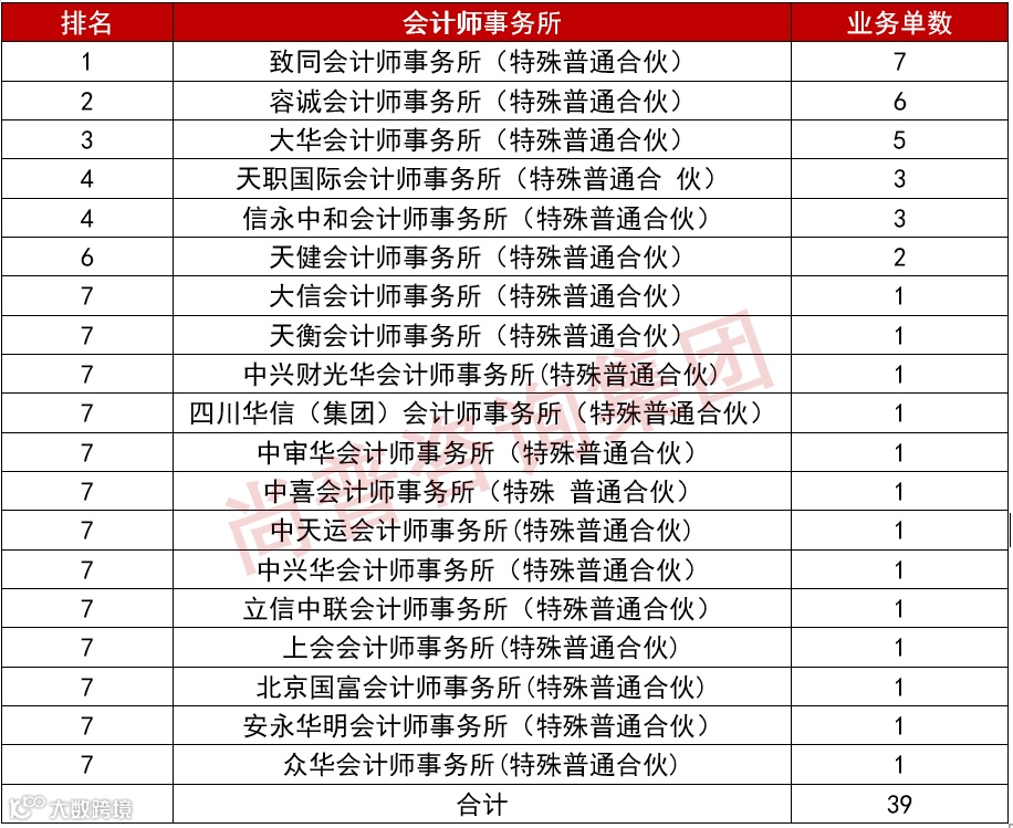 三、会计师事务所业绩排名