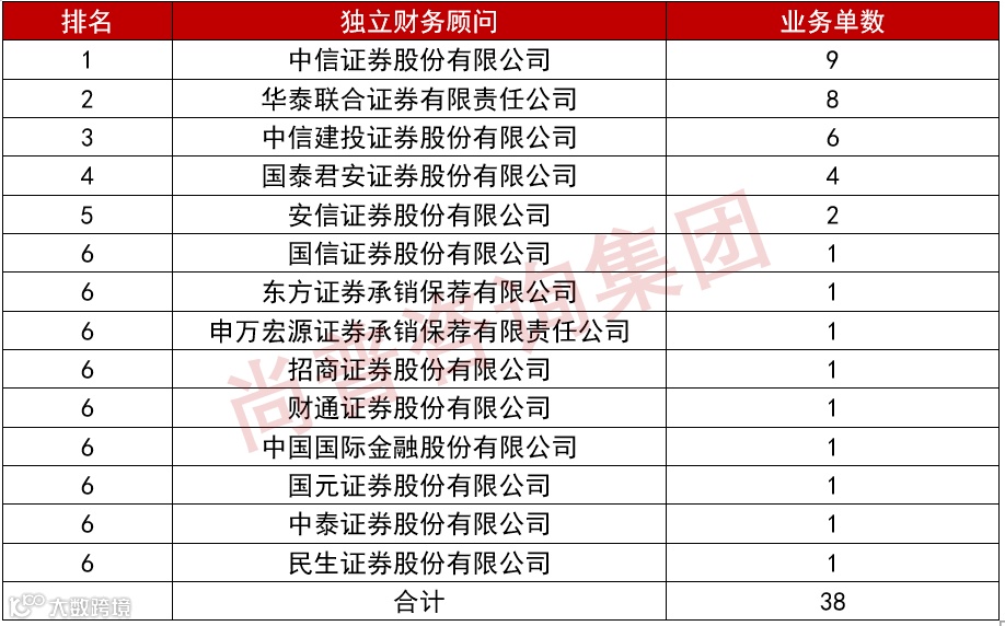 一、独立财务顾问业绩排名