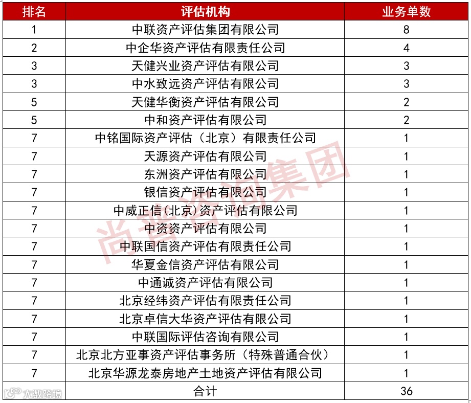 2022年截至11月16日,共有20家会计师事务所成功承办了这33单并购重组项目的评估业务。其中,西部黄金、华联综超、长江电力聘请了两家资产评估机构,故业务单数总数为36单。
