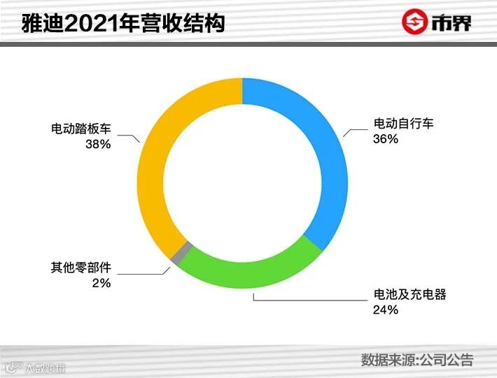 2021年,雅迪控股电动踏板车的平均售价为1662元,而电动自行车为1265元,所以电动踏板车虽然销量少于电动自行车,但营收占比高于电动自行车。