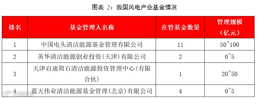 二、中国电头清洁能源基金管理有限公司是风电行业最大的产业投资基金