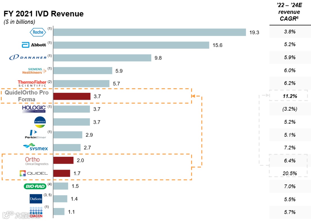 新公司命名为QuidelOrtho。这家2021年的总营收超过35亿美元全新IVD企业,直接跻身全球Top6!