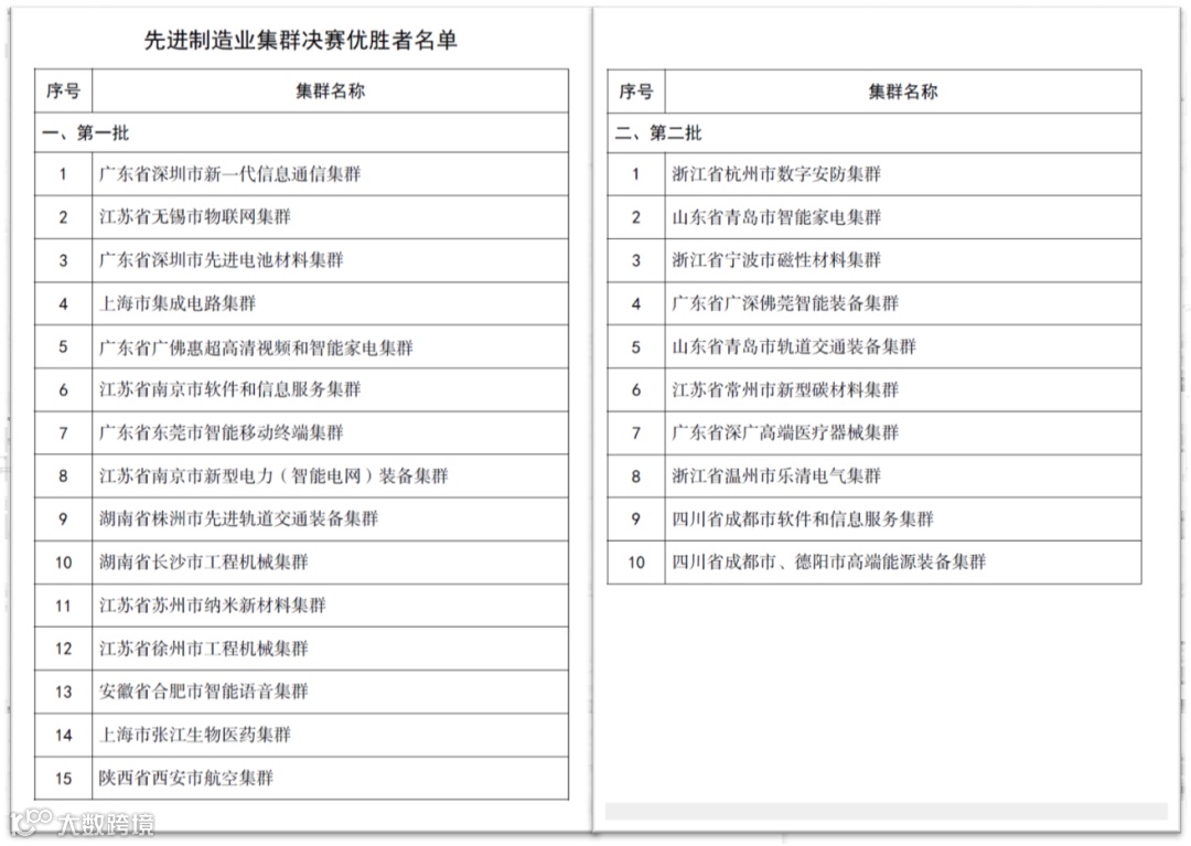 根据工信部2021年的公布先进制造业集群优胜者名单,广东共有6个产业集群入围“国家队”,其中涉及东莞的有2个。