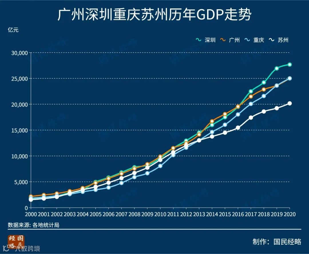 前几年,广州经济遭遇了增长之困,GDP不仅被深圳赶超,甚至对重庆的领先优势缩小到仅仅几十亿元,一时之间,广州跌出一线城市的说法甚嚣尘上。