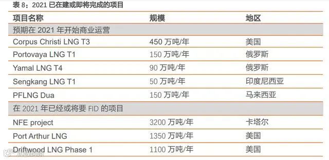 此外,LNG 巨头卡塔尔石油于 2021 年 2 月通过了北油田东部项目(NFE)的 FID,一期工 程预计于 2025 年四季度投产,二期工程预计于 2027 年投产,届时将为全球 LNG 产能带 来 3200 万吨/年的增量,占卡塔尔现有产能的 41.5%。我们预计未来以美国为代表的 LNG 巨头的产能扩充有望增大全球 LNG 市场供应的灵活性,缓解短期内偶发性因素导致的供 需错配。