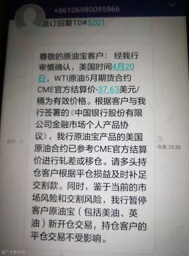 但对6万多中国银行“原油宝”投资人而言,这个笑话才是真实的噩梦,因为这个产品挂钩的正是这一期货合约,数以万计的投资人,在深夜熟睡的梦中,收到了中行发来的补仓和强制平仓短信。