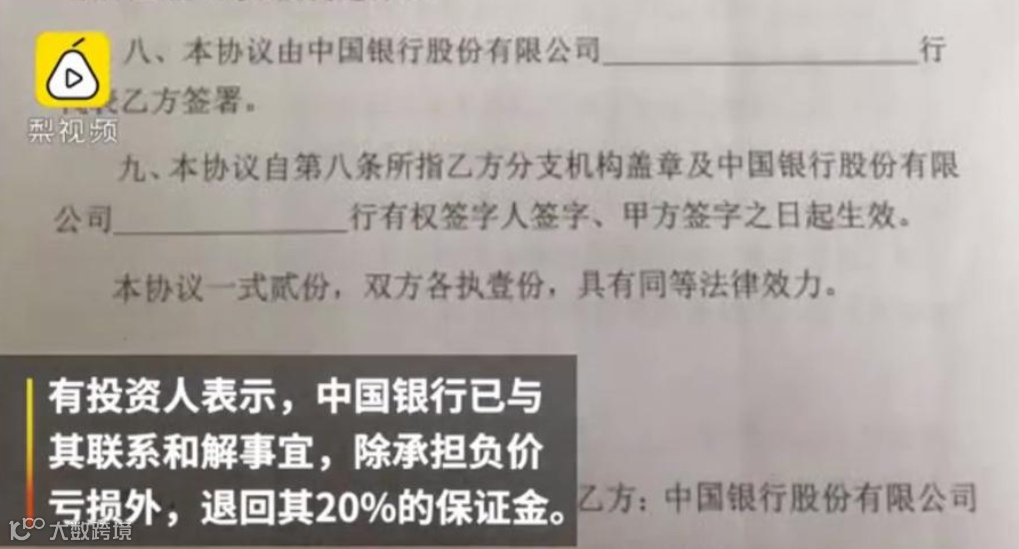 最终,法院也站在了投资人一边,判决中行承担全部穿仓损失,并补偿客户20%的本金损失。