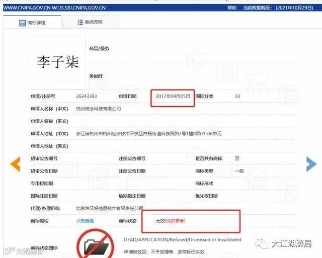 也在这个时候,杭州微念抢注的李子柒商标,全部被商标管理局驳回无效。