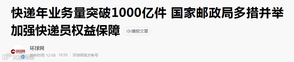 时至今日,中国的快递年业务量已经突破1000亿件,这离不开数百万快递员的辛勤劳动。就在12月8日,国家邮政局已经表态: