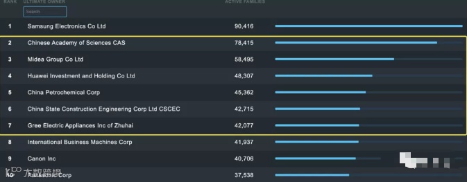 中科院位居全球第二,还有美的,还有格力,还有很多其他的中国企业,有国企,央企,也有一家又一家的民企,