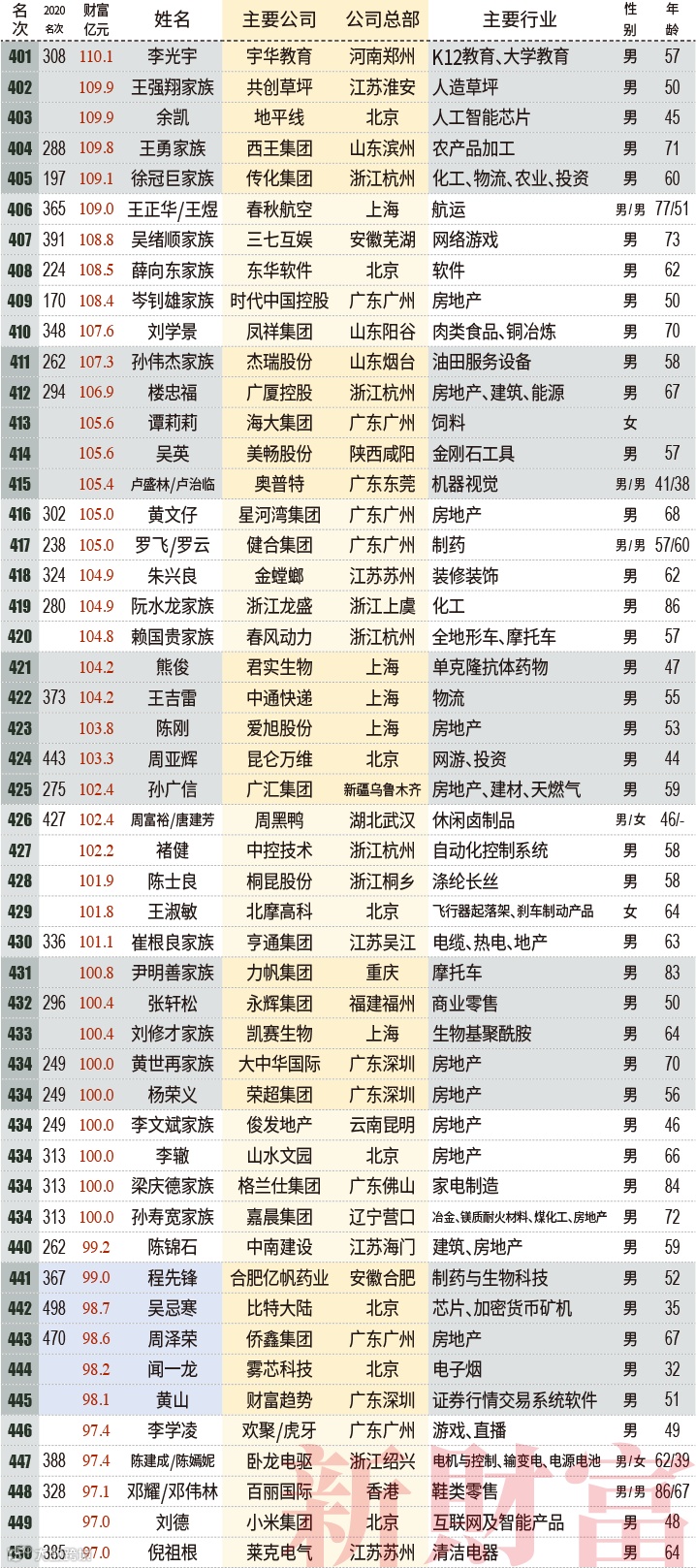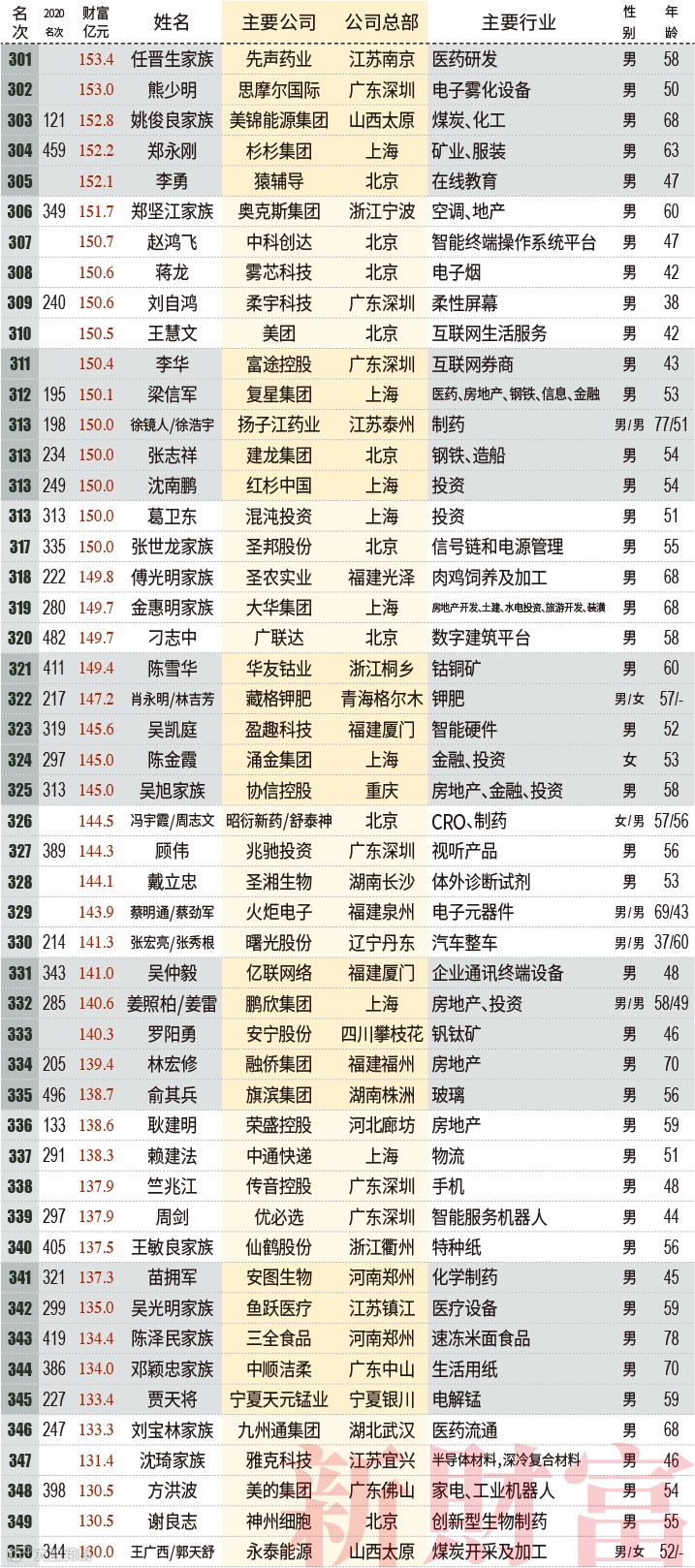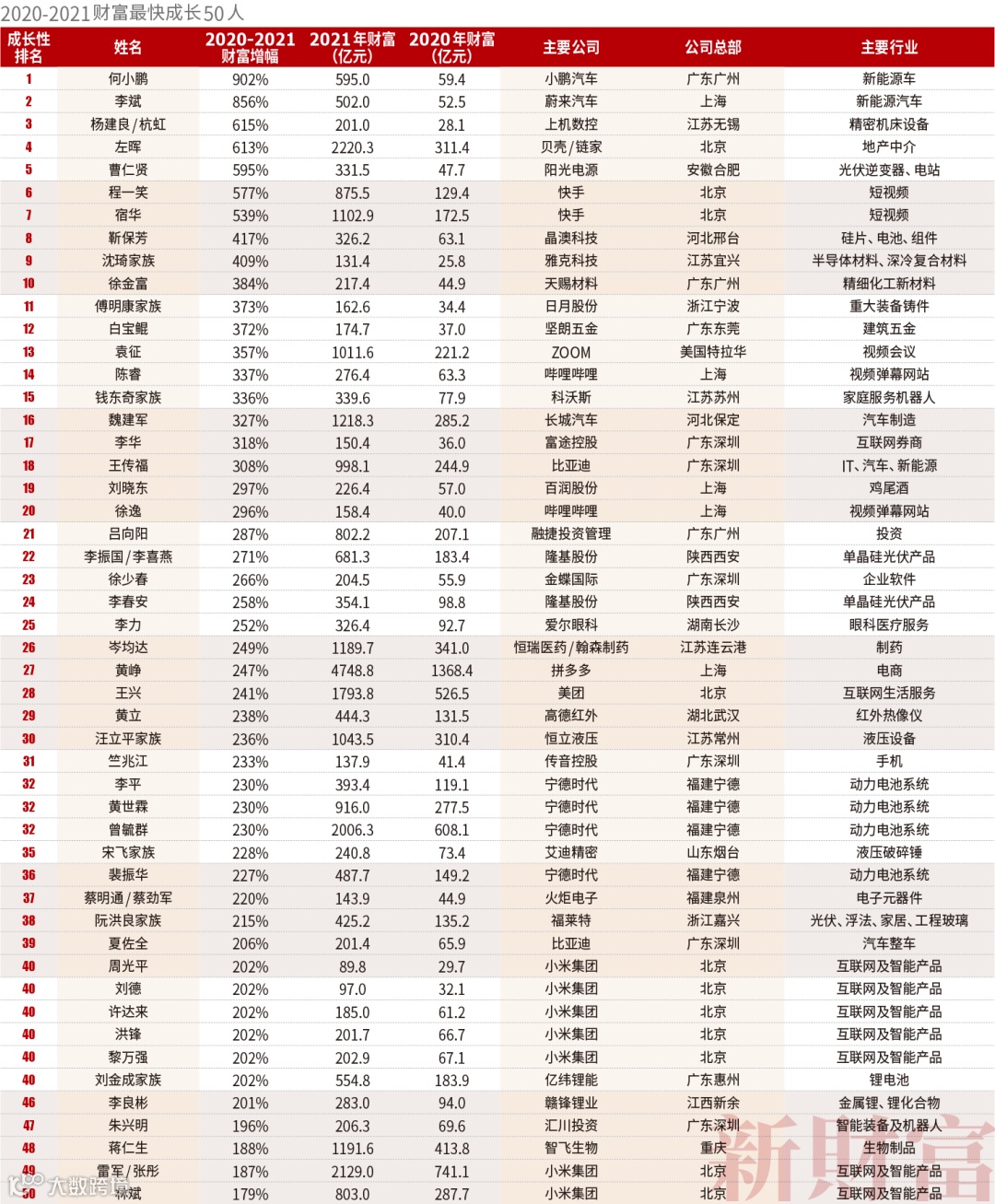 2020-2021财富最快成长50人: