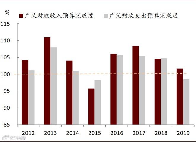 图表: 历史上广义财政支出的预算实现情况