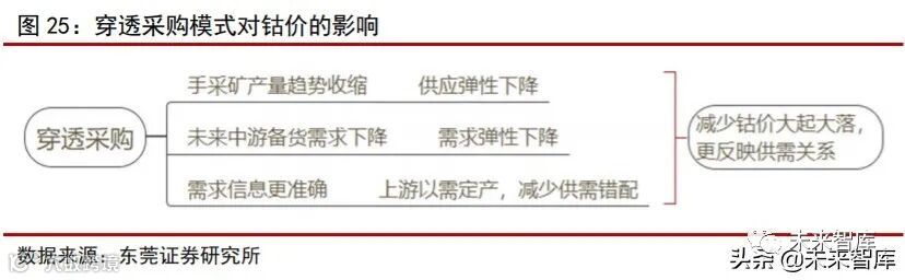 穿透采购影响三:穿透采购模式将使钴供需更匹配,有助降低钴价格波动。下游电 池及整车厂直接面向市场,掌握的需求信息更准确,向上游矿企直接采购钴原料,钴矿 企业则可以需定产,减少供需错配,有助降低钴价波动,使钴价更能反映真实供需关系。