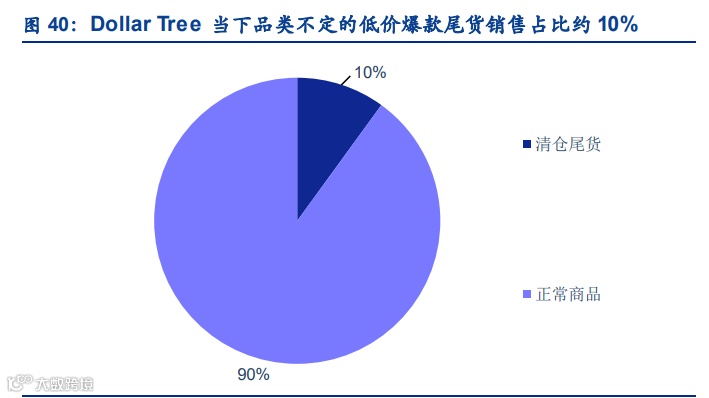 美国折扣杂货店已有多年发展,近年大获成功,其部分成功因素在于①选择近场模式并在 SKU 品类上避开避开电商强势品种,在引流品类上销售具备优势。②相较传统超市差异化的 供应链管理带来的优势。相较于极致供应链管理的沃尔玛,折扣连锁店不以齐全的 SKU 比 拼价格,而寻找尾货及来自亚洲的低价进口商品,在品牌商品上以少型号高采购量提升议价 能力,从而形成独特的供应链优势。同时看到,随着销售规模的扩大,尾货销售会逐渐下降, 自有供应链体系构建会更加成熟,以 Dollar Tree 为例,尾货占比从模式创立之初的 40%-50% 逐渐下降至 10%,而公司采购自中国、墨西哥等的进口商品占比则达到了 40%-50%,也与 更多的美国三四线品牌制造商建立了合作。在这样的供应链体系下,折扣杂货店始终维持 30% 以上的高毛利水平。
