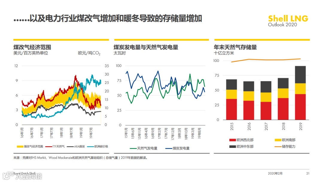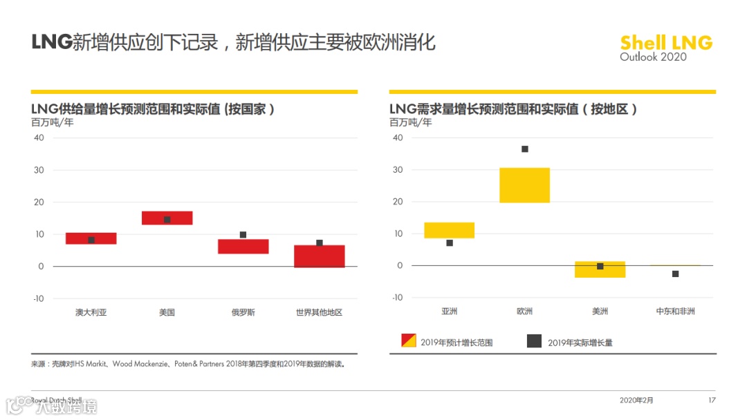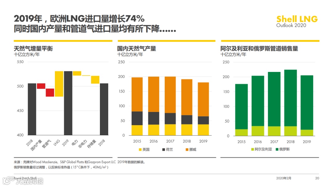 欧洲吸收了2019年大部分新增供应,因为具有价格竞争力的液化天然气(LNG)推进了电力行业的煤改气,补充了国内天然气的减产并取代部分管道天然气进口。