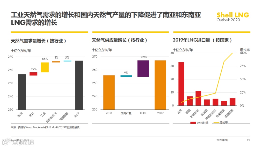 在中国,随着继续改善城市空气质量的努力,2019年液化天然气进口量增长14%。南亚的液化天然气需求增长也值得注意。孟加拉国、印度和巴基斯坦总进口量达3600万吨,相比去年增加19%,属于亚洲的新兴增长国家。