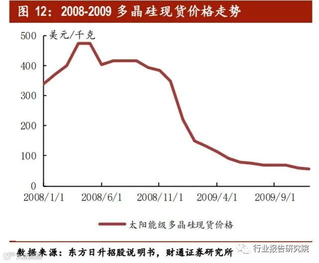 回顾历年光伏多晶硅价格走势,大致经历了暴力拉升-价格坍塌-震荡下跌三个阶段,其中 2008-2009 是光伏多晶硅供需切换引发价格坍塌的历史拐点。