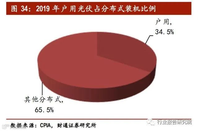 户用市场有望继续成为亮点。户用市场发展迅猛,已成为光伏应用市场重要组成部分。2019 年,纳入补贴规模的户用光伏项目总计 5.3GW,较原定计划 3.5GW 提升 51.4%。其中 2019 年户用光伏并网规模达 3.55GW,占全年分布式装机 34.5%。2020 年光伏新政中,户用光伏补贴总额 5 亿元,占总补贴比例从 2019 年的 25%提升至 33.3%。结合近期新版 2020 年光伏项目电价政策中的价格规定,户用光伏度电补贴明确为 0.08 元/千瓦时,测算户用光伏全年新增装机仍然可达 6-7GW,并网规模仍然可观。
