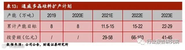 头部企业成本优势明显,扩产加速市占率提升。国内头部硅料企业,如通威、大全新能源、新特能源等,近几年扩建了大规模低成本产能,综合成本优势进一步扩大。在海外产能退出和光伏行业巨大发展潜力下,国内厂商市场占有率有望进一步提升。通威股份 2020 年 2 月发布扩产计划,进一步巩固和强化核心竞争力。