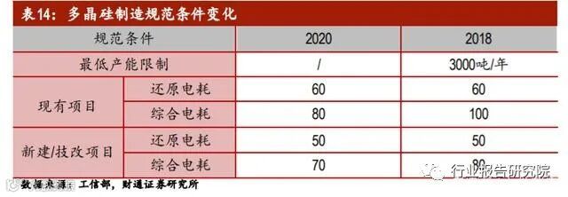 行业规范标准提高,格局趋于稳定。为控制新上单纯扩大产能的光伏制造项目,引导光伏行业合理健康发展,加快推进光伏产业转型升级,工信部发布了《光伏制造行业规范条件(2020 年本)》(征求意见稿),对项目扩产标准要求大幅提高,多晶硅项目扩产的能耗标准大幅提升,小厂扩产技术层面达标难度较大,政策出台将提升行业集中度,进一步利好龙头企业。